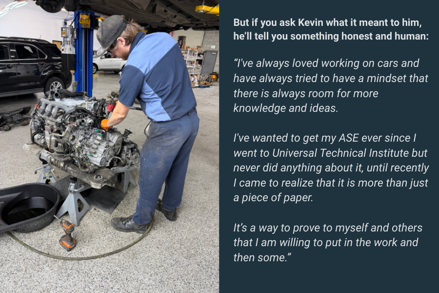 If you ask Kevin about his Master ASE Certification, he’ll shrug it off like it’s no big deal.