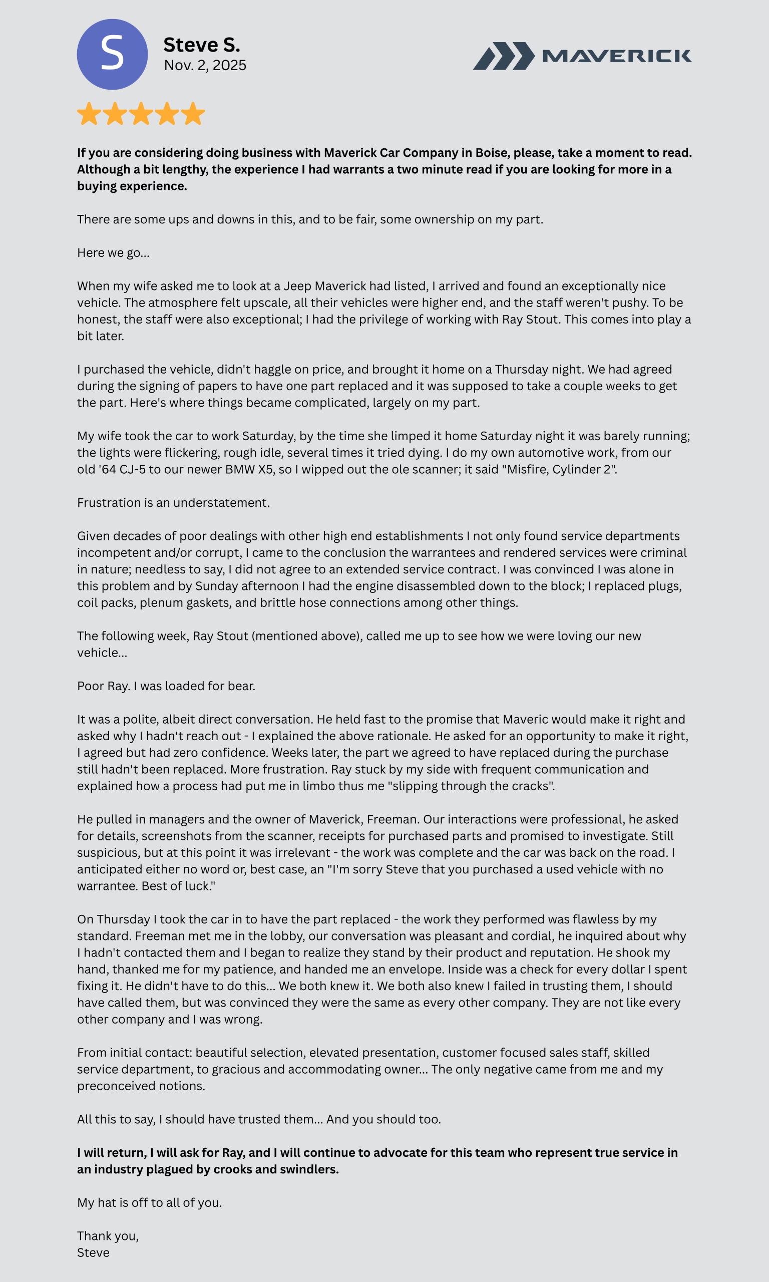 Steve’s experience didn’t start picture perfect… but it ended with trust, patience, and a reminder that when things go wrong, that’s when true colors show.