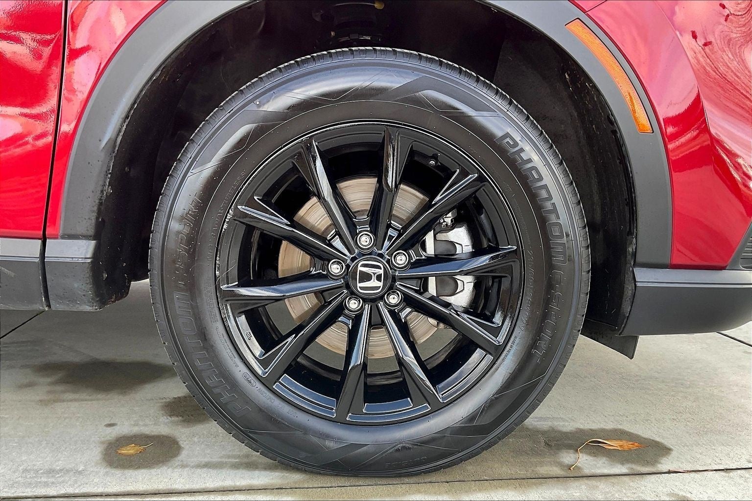 2023 Honda CR-V Hybrid Sport CARFAX One-Owner. Accident Free Carfax History, Automatic, Heated Seats, Sunroof, Backup Camera, Bluetooth®, Hands-Free, 4x4, AWD, Power Windows, Power Locks, Power Seat, Power Mirrors, Traction Control, Sirius Satellite, Keyless Entry, Alloy Wheels, Recall Free, Stability Control, Daytime Running Lights, Hill Start Assist Control, 4-Wheel Disc Brakes, 4.438 Axle Ratio, 6 Speakers, ABS brakes, Adaptive Cruise Control: Adaptive Cruise Control (ACC) with Low-Speed Follow, Air Conditioning, Alloy wheels, Apple CarPlay/Android Auto, Auto High-beam Headlights, Automatic temperature control, Brake assist, Bumpers: body-color, Cloth Seat Trim, Compass, Delay-off headlights, Driver door bin, Driver vanity mirror, Dual front impact airbags, Dual front side impact airbags, Electronic Stability Control, Exterior Parking Camera Rear, Four wheel independent suspension, Front anti-roll bar, Front Bucket Seats, Front Center Armrest, Front dual zone A/C, Front reading lights, Fully automatic headlights, Heated door mirrors, Heated Front Bucket Seats, Heated front seats, Illuminated entry, Knee airbag, Leather Shift Knob, Leather steering wheel, Low tire pressure warning, Occupant sensing airbag, Outside temperature display, Overhead airbag, Overhead console, Panic alarm, Passenger door bin, Passenger vanity mirror, Power door mirrors, Power driver seat, Power moonroof, Power steering, Power windows, Radio data system, Radio: 240-Watt AM/FM Audio System, Rear anti-roll bar, Rear reading lights, Rear seat center armrest, Rear side impact airbag, Rear window defroster, Rear window wiper, Remote keyless entry, Security system, Speed control, Speed-sensing steering, Speed-Sensitive Wipers, Split folding rear seat, Spoiler, Steering wheel mounted audio controls, Telescoping steering wheel, Tilt steering wheel, Traction control, Trip computer, Turn signal indicator mirrors, Variably intermittent wipers, Wheels: 18 Berlina Black Alloy.